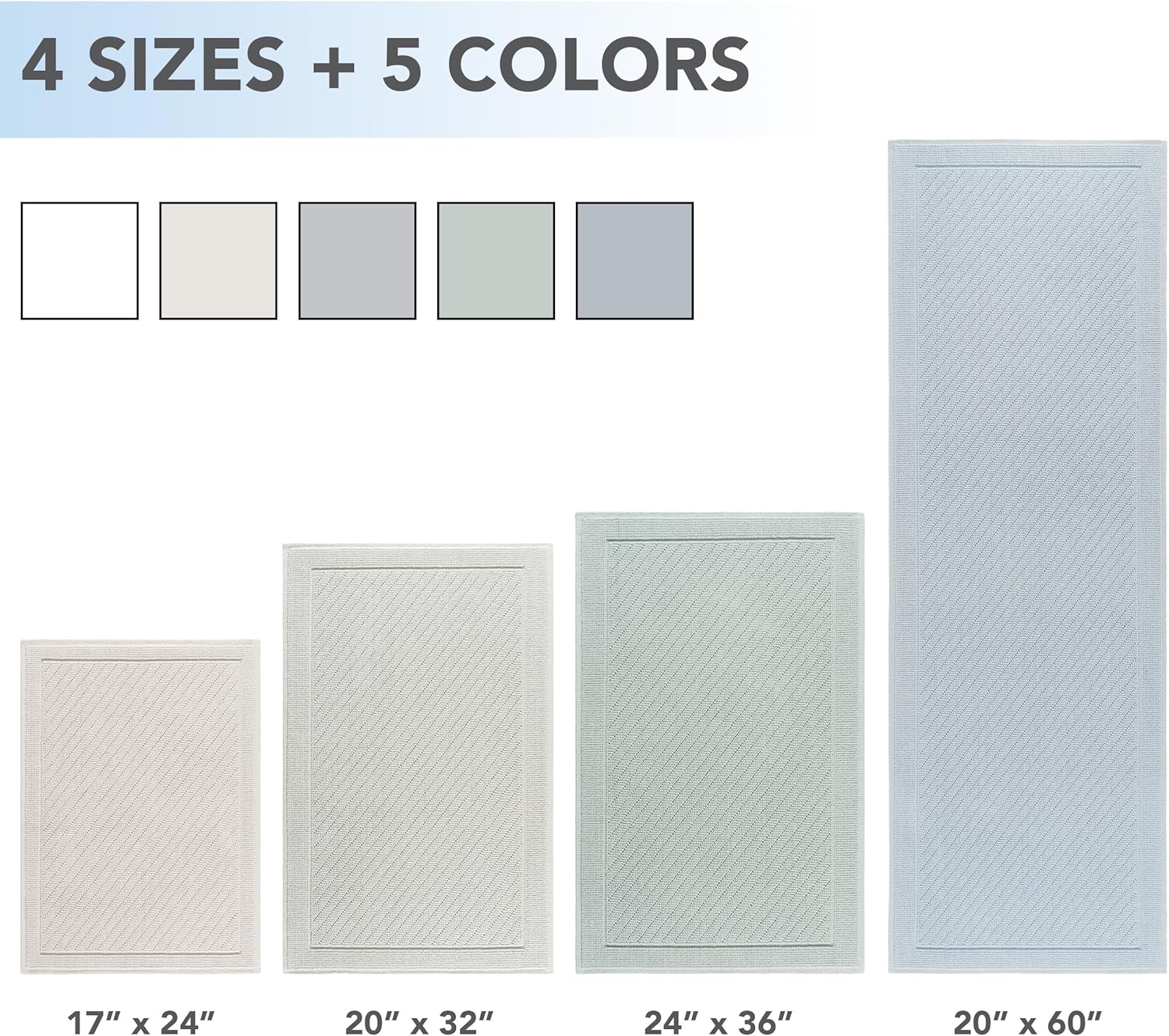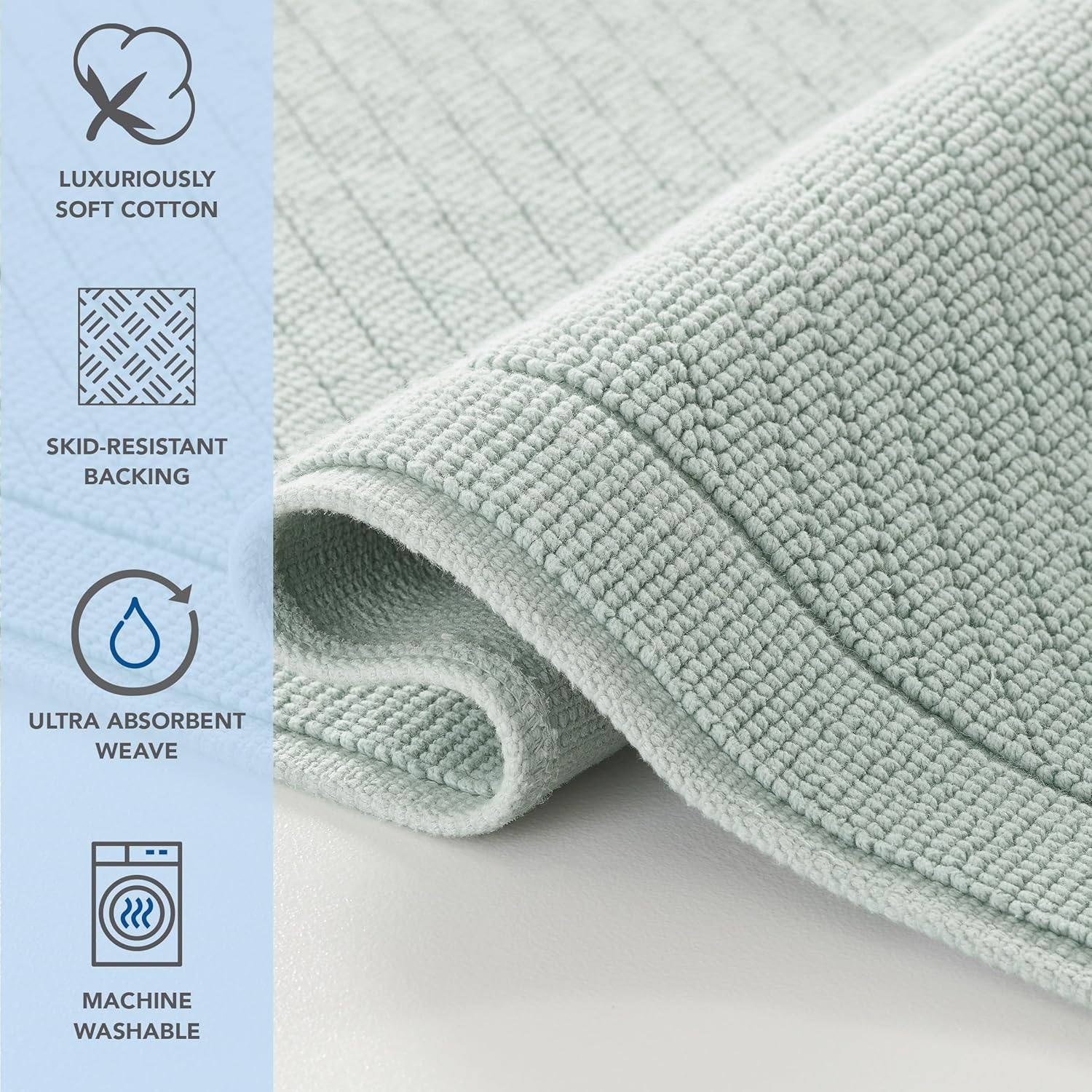 Arkwright 100% Cotton Bathroom Rug – High Absorbent Stylish Textured Woven Design Bath Mat, Slip Resistant Backing for Shower and Bathtub Floor, 20×32 in – Green