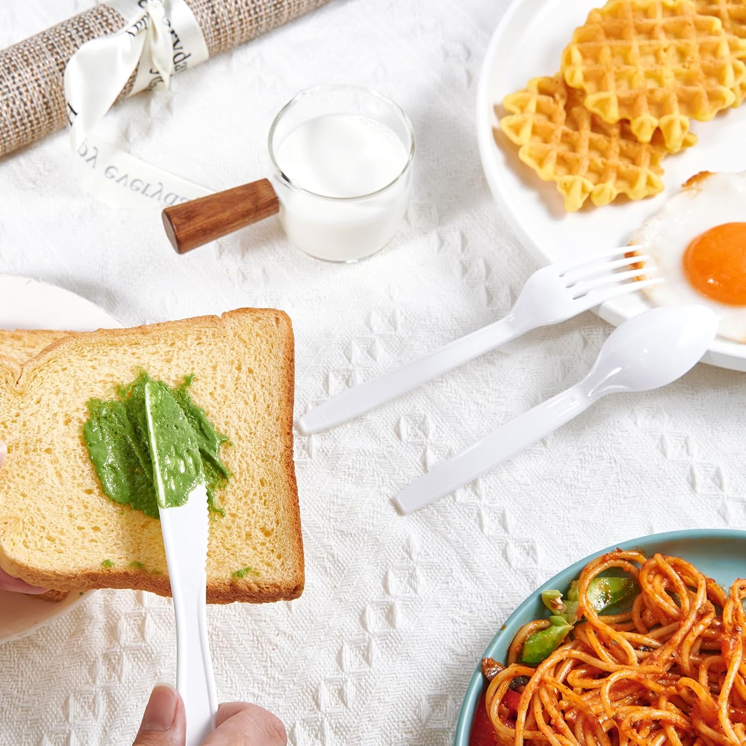 JOLLY CHEF 360 Pack Plastic Cutlery Set, White Disposable Plastic Utensils Heavy Duty