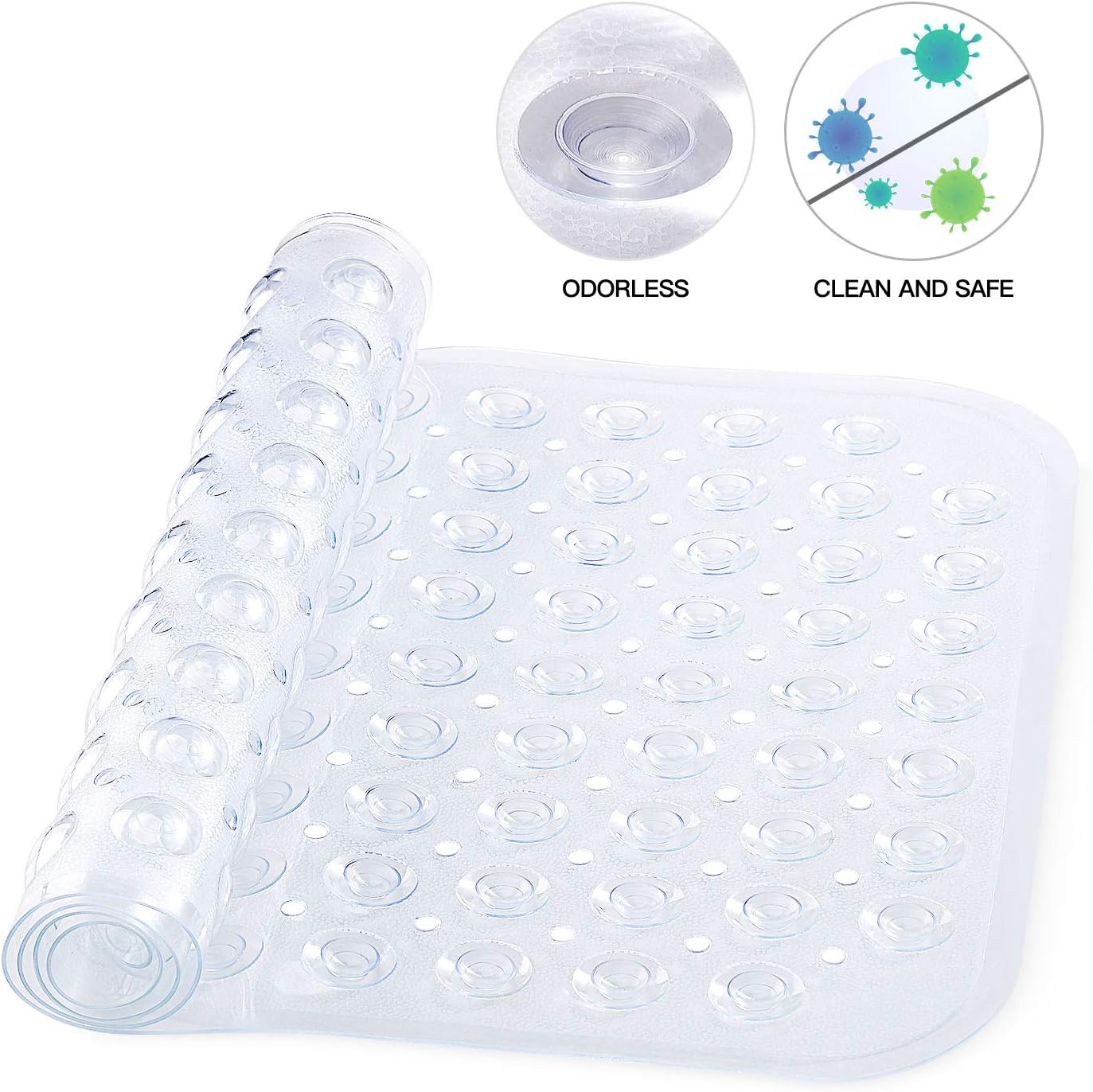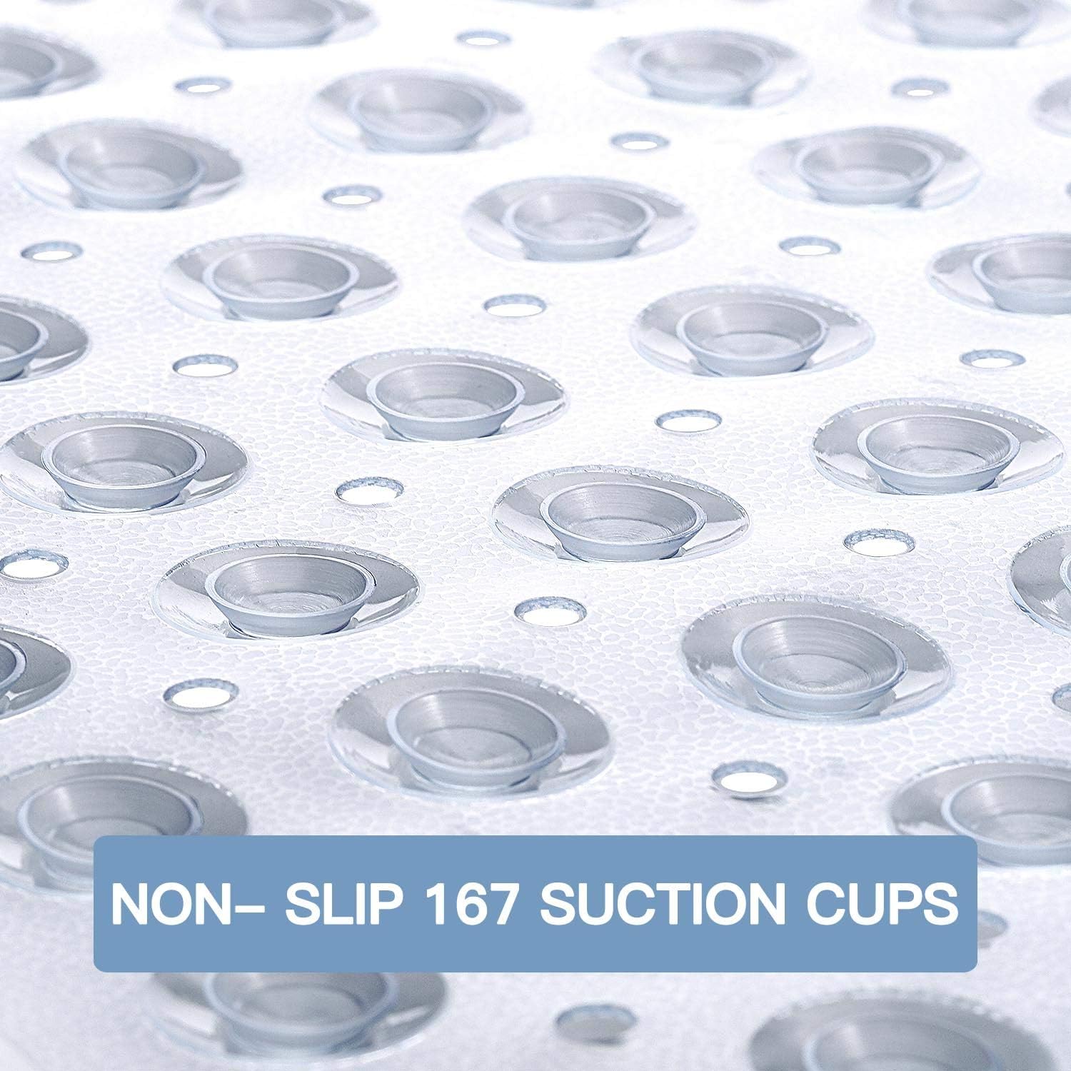 YINENN Bath Tub Shower Stall Mats 31×15.5 Inch Non-Slip and Latex Free, Bathtub Mat with Suction Cups, Machine Washable Bathroom Mats with Drain Holes (Clear)